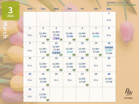 B-H-Baseの営業日は以下のカレンダーをご参照ください。