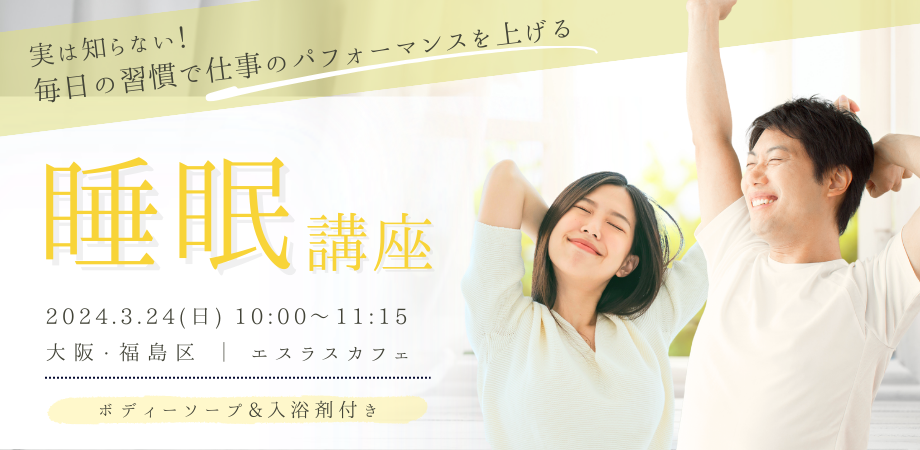 【美容・健康イベント@大阪梅田】実は知らない!毎日の習慣で仕事のパフォーマンスを上げる睡眠講座(3/24[日]10:00-11:15)